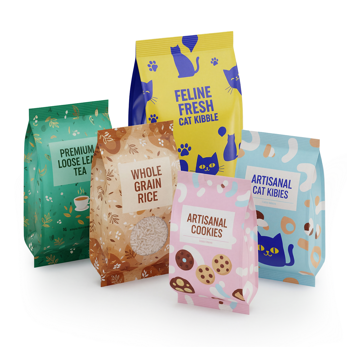 On le retrouve également dans des conditionnements plus petits, par exemple pour des snacks ou biscuits pour animaux, où l’aspect pratique et refermable est un atout.